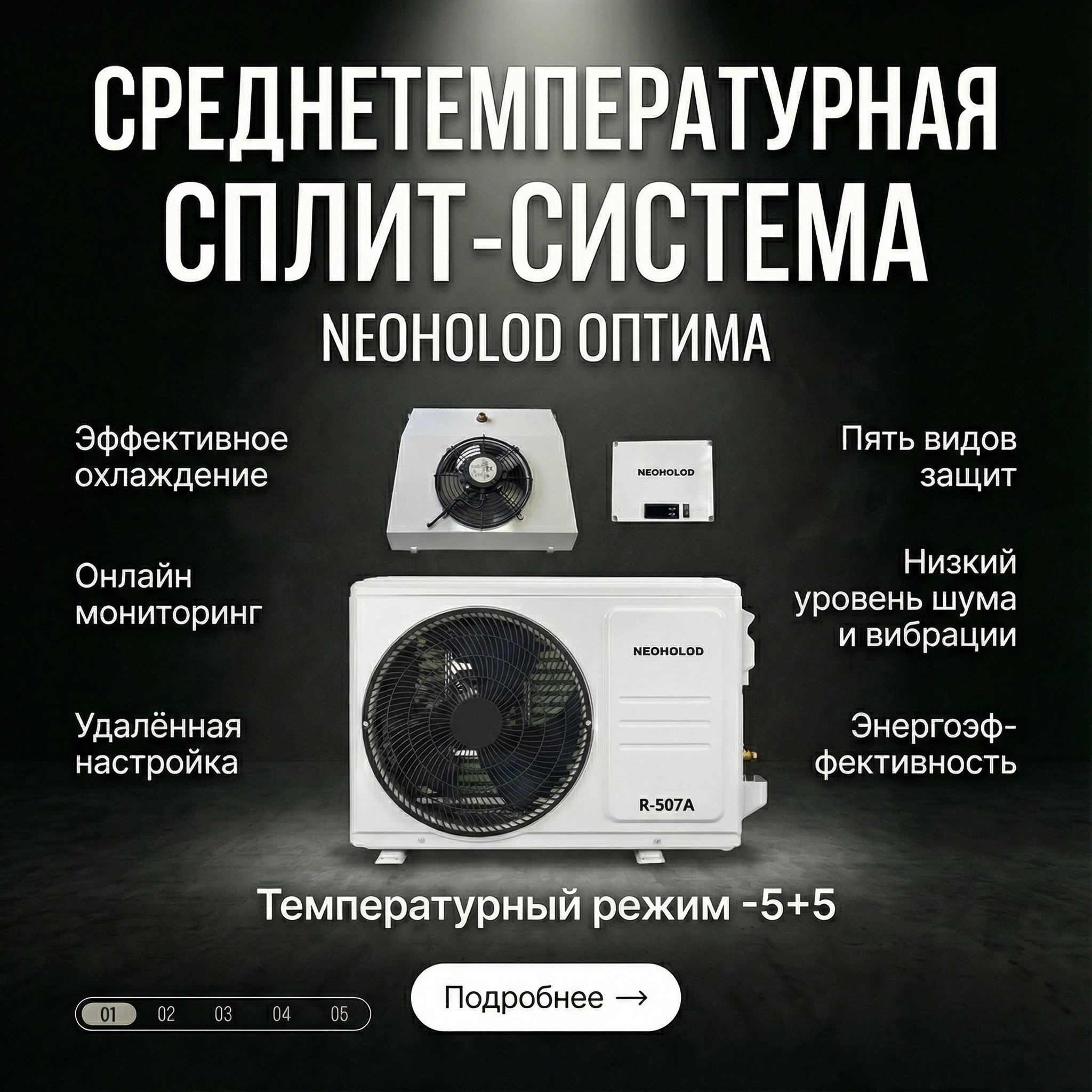 Первая в России умная среднетемпературная сплит-система Neoholod Оптима СС 1.1