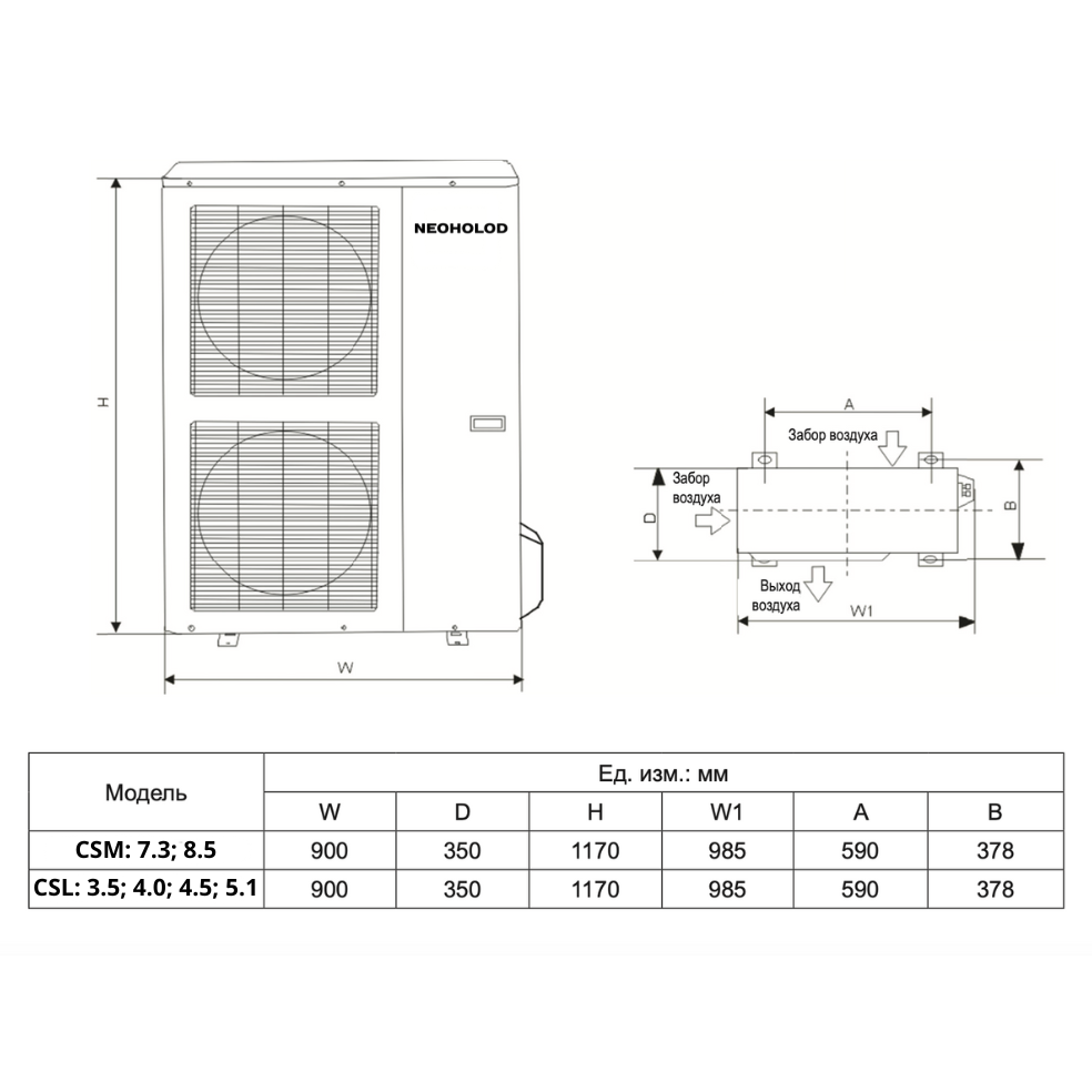 Технические характеристики сплит-систем Neoholod Оптима: Открыть